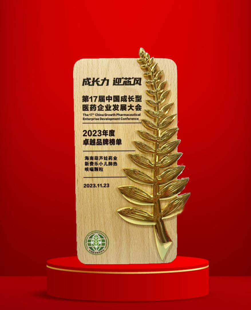 大会期间,一年一度的“金叶奖•2023年度医药行业风云人物奖”榜单重磅揭晓,恒峰g22药业集团党委书记、董事长刘景萍荣耀上榜。金叶奖是为了表彰广大医药企业家或企业为行业茁壮发展做出的卓越贡献而设立的奖项,“金”象征着品质、品牌、影响力,“叶”象征着生命、健康、成长力。金与叶结合,有“敬业、兢业、竞业”之意。此外,集团黄金单品新费乐®小儿肺热咳喘颗粒凭借卓越的产品质量和品牌影响力赢得了行业、市场和消费者的肯定,获得了“2023年度卓越品牌奖”。